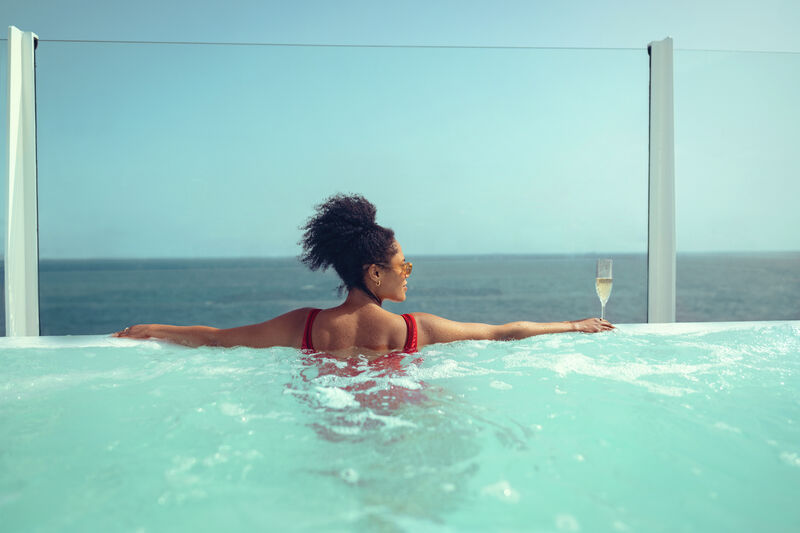 The Grills Terrace is an exclusive outdoor haven for Grill Suite guests. A serene escape with attentive service, it is the perfect setting for Champagne, cocktails, or afternoon relaxation beneath the open sky. This elevated sanctuary sets Cunard’s Grills experience apart from traditional cruise lounges. With two glass whirlpools, guests enjoy the views as the world slow goes by.